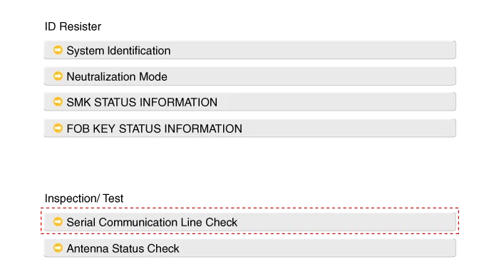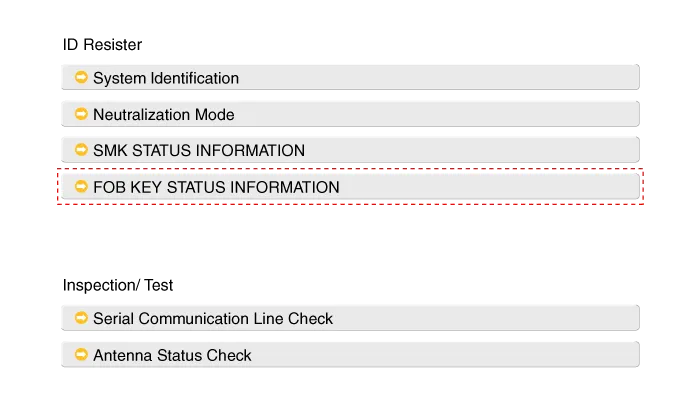 After IGN ON, select the "FOB KEY STATUS INFO".