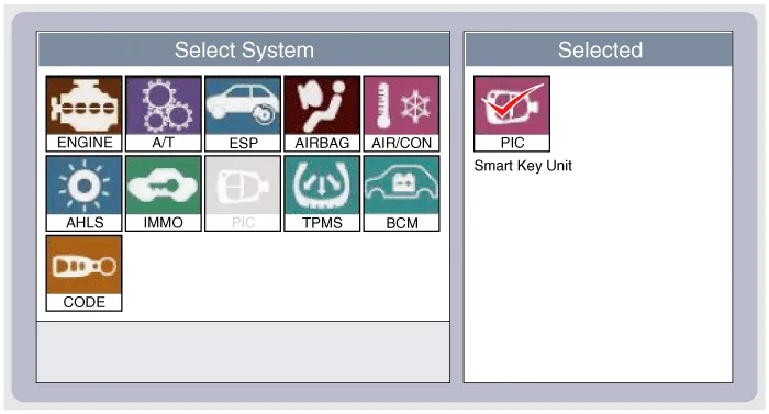 After IG ON, select the "SMK STATUS INFO".