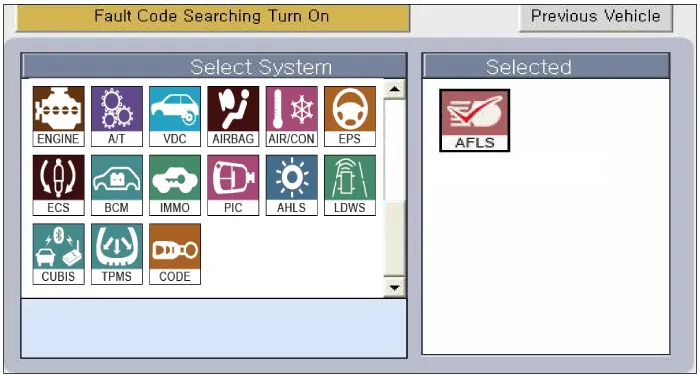 Description AFLS Unit(ECU) AFLS located in Cockpit Module is provided information of vehicle (steering wheel signal,vehicle speed, inclination of vehicle).
