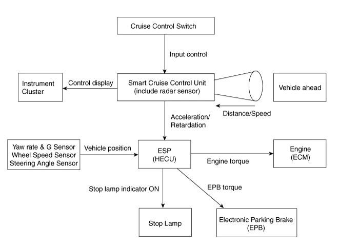Description The smart cruise control system allows a driver to program the vehicle to control the speed and following distance detecting the vehicle ahead without depressing the brake pedal and the accelerator pedal.