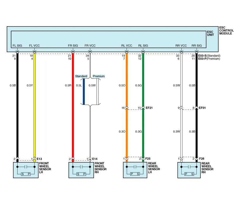 | 28 | 27 | SENSOR FRONT RIGHT OUTPUT | External pull up resistance : 1 KΩ < R Output duty :50 ± 20% |