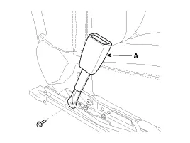 Loosen the seat belt buckle mounting bolt and remove the seat belt buckle switch (A).