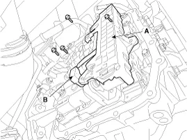 Remove the solenoid valve harness (A) and oil temperature sensor (B) after removing the bolts.