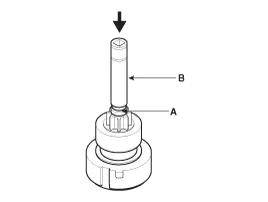 Remove the stopper (A), overrunning clutch (B), internal gear (C) and planet shaft (D).