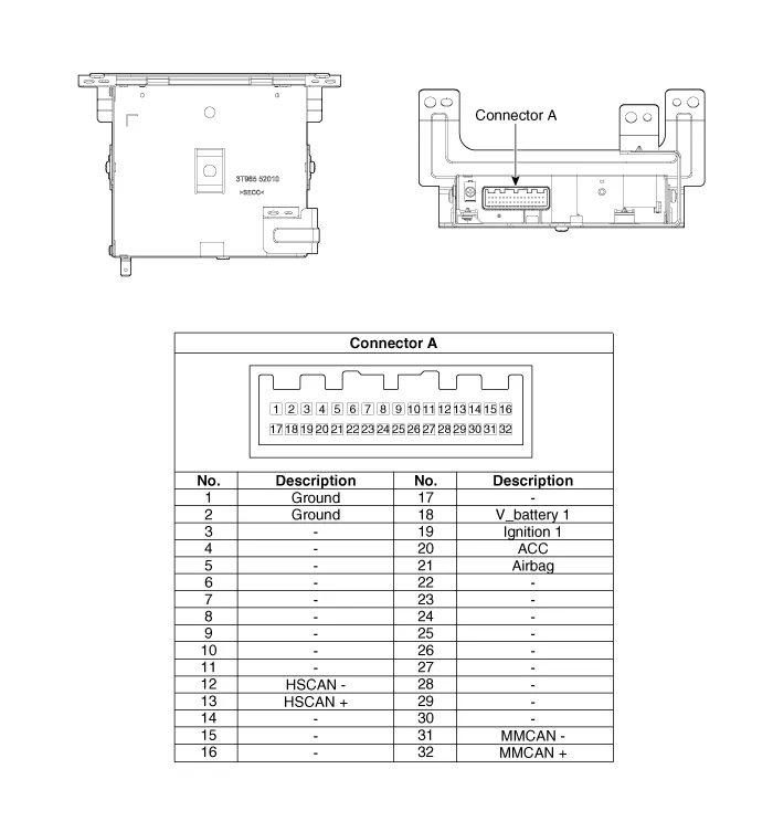 | 32 | MM CAN (+) | Data I/O | BUS | BUS | Low Speed CAN bus high |