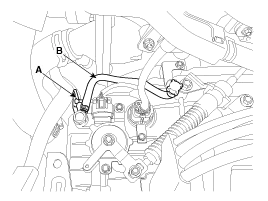 Remove the wiring bracket (A) and the air breather hose (B).