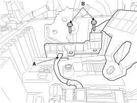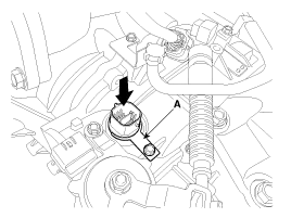 Replacement 1. Remove the condenser, and then remove the bottom cap (B) with L wrench (A) from the condenser. Tightening torque : 9.8~14.7N.m (1.0~1.5kgf.m, 7.2~10.8 lb-ft) 2. Remove the desiccant (A) from condenser using a long nose plier.