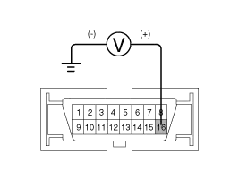 Measure the voltage between terminal 16 of the data link connector and body ground.