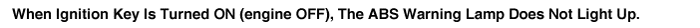 When ignition key is turned ON (engine OFF), the ABS warning lamp does not light up.