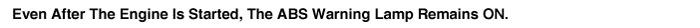 Even after the engine is started, the ABS warning lamp remains ON.