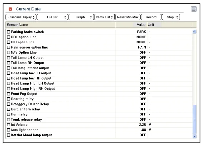To check the input value of lamp switch in force mode, select option "Actuation Test of smart junction box".