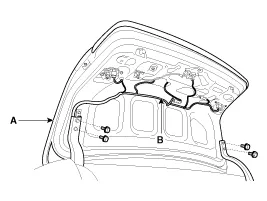 Using a screwdriver or remover, remove the trunk lid back panel (A).