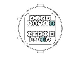 Measure the resistance between power terminal (5) and signal terminal (16).
