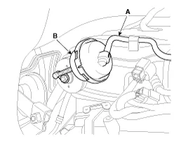 Removal 1. Disconnect the negative (-) battery terminal. 2. Remove the crash pad lower panel. (Refer to Body - "Crash Pad") 3. Disconnect the 6P connector (B) of the coil antenna and then remove the coil antenna (A) after loosening the screw.