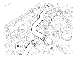 Disconnect the radiator upper hose (A) and lower hose (B).