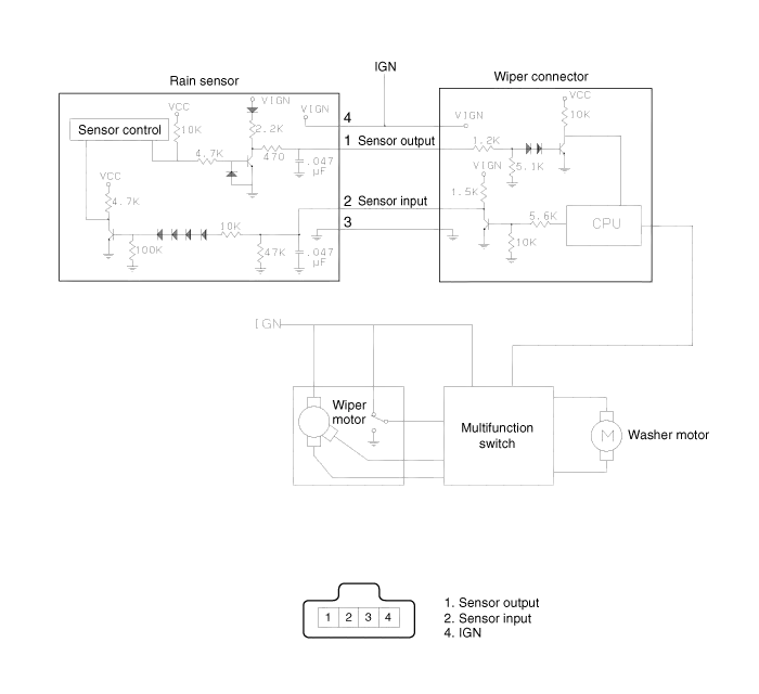 Description The Rain sensing windshield wiper system is a wiper system that, in addition to providing normal wiper functions off, mist, manual low speed, manual high speed, and wash, provides automatic control of automatic intermittent automatic low, and automatic high speeds.