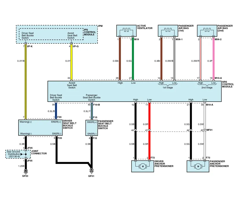 | 13 | (1st stage) Passenger Airbag High | 13 | Seat belt Pretensioner [Passenger] High |
