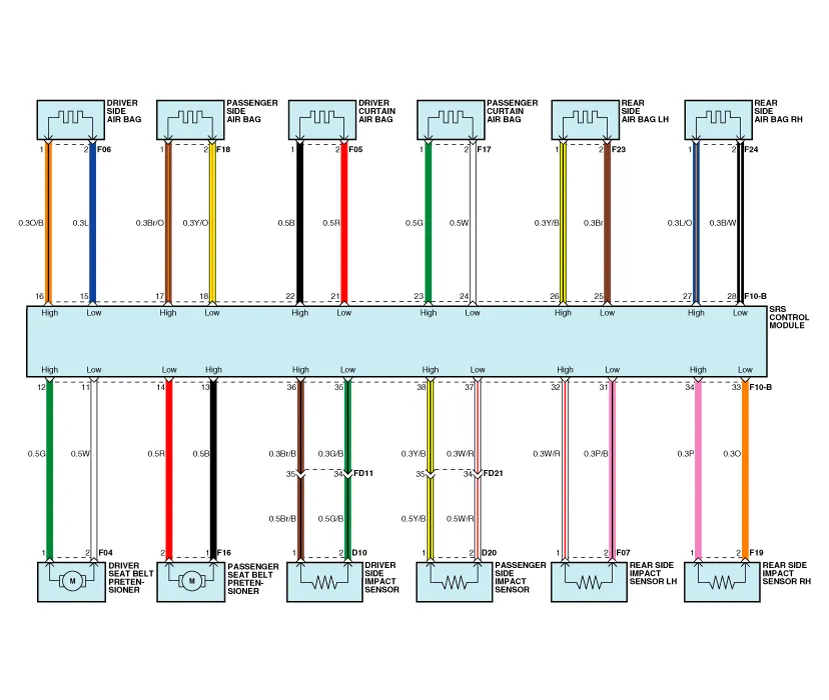 | 24 | Front Impact Sensor [Passenger] Low | 24 | Curtain Airbag [Passenger] Low |